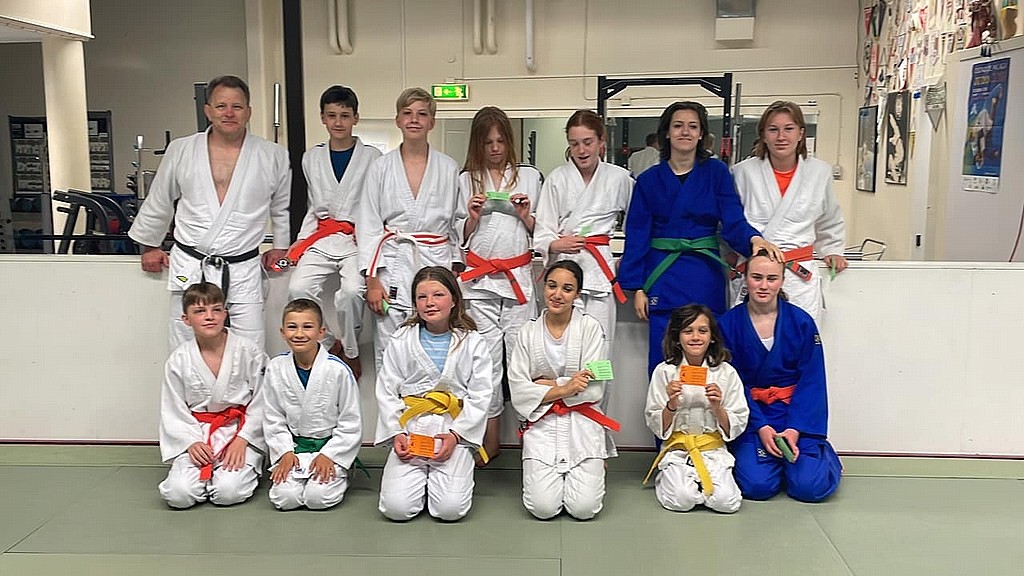 Två nya grönbälten: Valerio och Jonathan, tre nya orangebälten: Zakarias, Ehsam och Li och fyra nya gulbälten: Samuel, Adam, Filip och Tobias